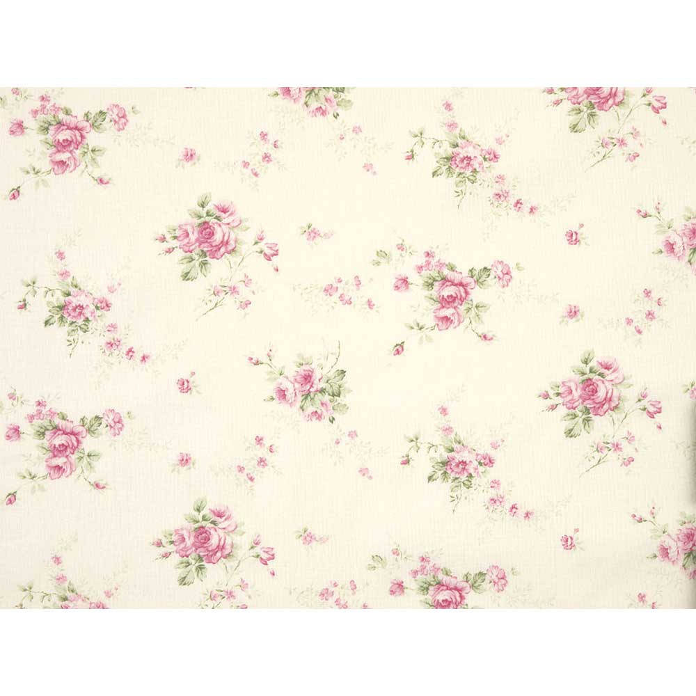 可憐なピンクの花を描いたやさしい色合いのプリント。裏布やインテリアなどにも。