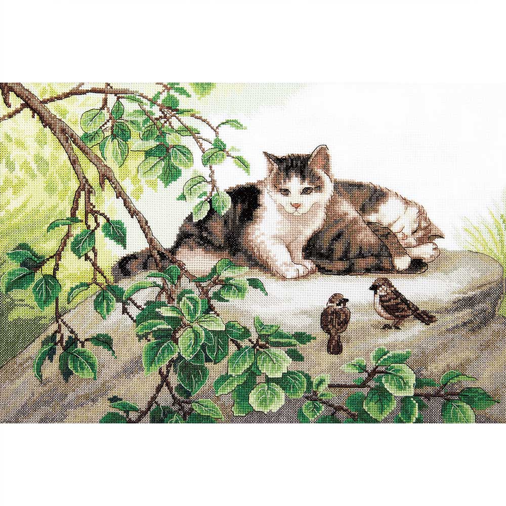 【キット作り方つき】木々が芽吹き、ネコや小鳥たちも気持ち良さそうに春の訪れを喜んでいるようなクロスステッチ作品です。 上級の方向き。ウクライナ・Charivna社製(チャリブナ)。