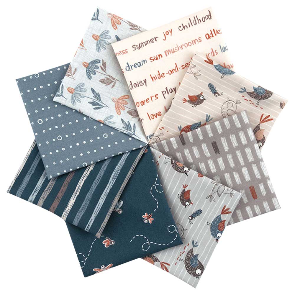 【USA】 子供の頃の思い出をもとに、小鳥や昆虫、花柄などをスケッチ風に可愛らしく描いたカットクロスセットです。