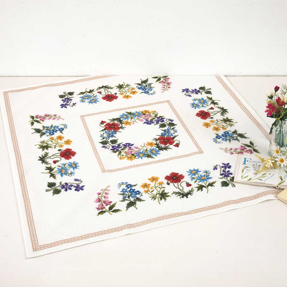 クロスステッチキット[春の小花のテーブルクロス]