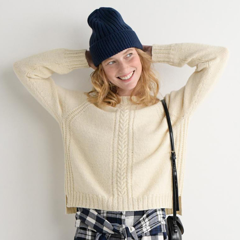 どんなアイテムとも相性の良い、生なりのニット。定番のトップダウンですが、細い針で丁寧に編めば、使い勝手花丸、唯一無二の相棒に。イギリスのガーンジーヤーンで編むシンプルトラッドなプルオーバーは、スカートにもパンツにも合わせやすく、前後差のある丈感で今時のスタイルが叶います。