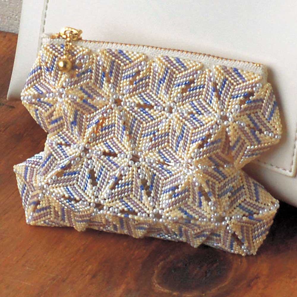 【キット作り方つき】丁寧にビーズステッチで編み仕立てる手仕事の温かみと、デリカビーズの繊細さが魅力のポーチ。ペヨーテステッチで三角形のパーツを作り、パールを通しながらパーツをつなげ、ポーチに仕立てます。ポーチの左右が絞られたユニークな形。ファスナー付けはビーズの穴を利用して縫い付けるので比較的簡単です。