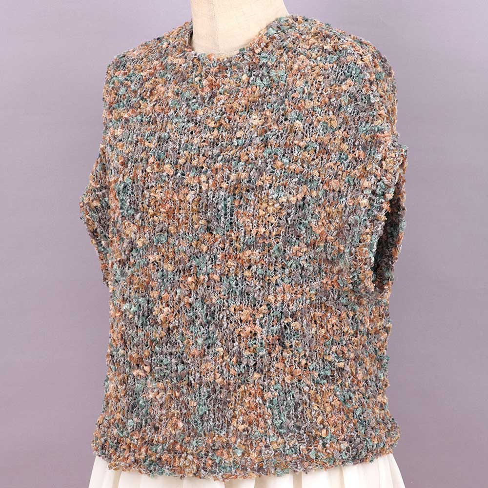 【キット作り方つき】メリヤス編みメインで編む、人気シルエットのベストです。羽根のようにふわふわとした極太糸で、ニュアンスのある仕上がりに。初級の方にもぴったり。
