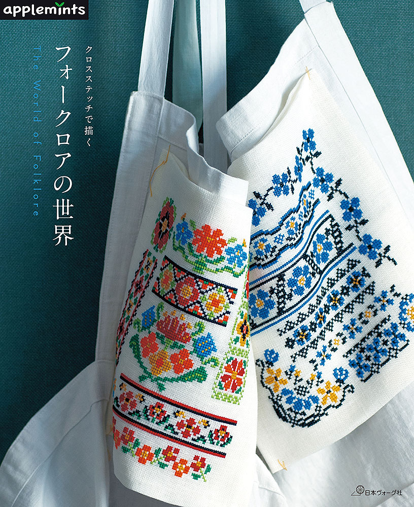 民族・民間伝承の意味を指すフォークロアをテーマにしたクロステッチ図案集。フォークロア柄に多い、「生き物」「花・植物」「連続模様・幾何学模様」を3つのセクションに分けてご紹介。糸と布はDMCの素材を使用。色選びに便利な刺しゅう糸の色見本ページつき。