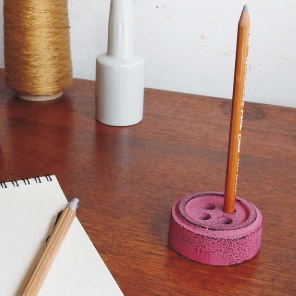 岩手県の伝統工芸・南部鉄器をボタンモチーフのデザインで文ちんに。360gの重さで布や型紙をしっかり押さえます。質感と風合いを残して色づけした3色をご用意。スタッキングできるので重ね使いもお勧めです。