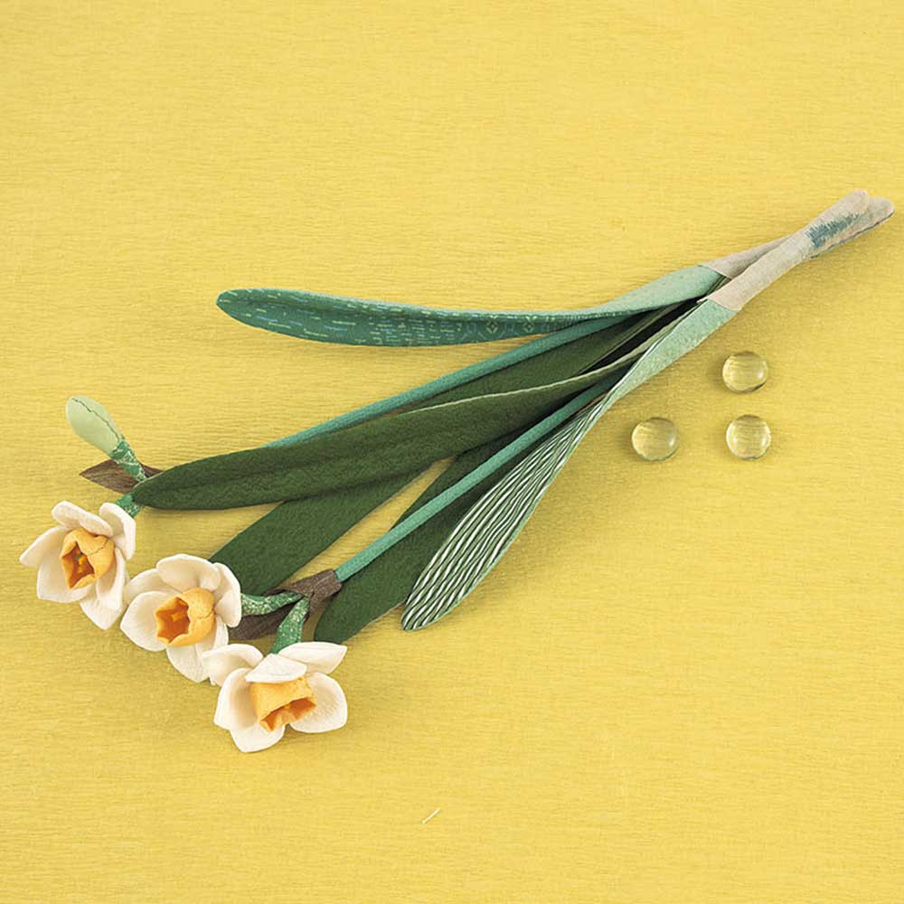【キット作り方つき】【古裂】早春に咲くスイセンをリアルに再現した花飾りが2本作れます。優しいインテリアとして通年楽しめそうです。