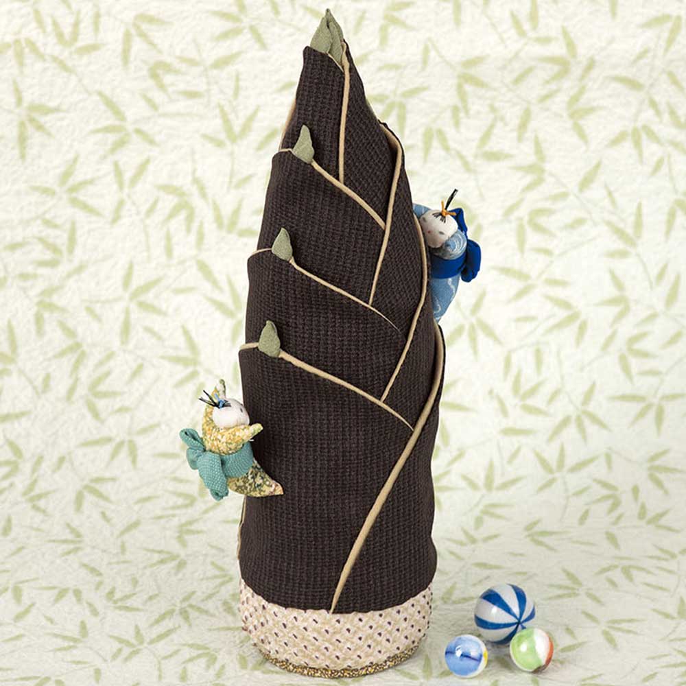 【キット作り方つき】【古裂】「よいしょ、よいしょ」とタケノコによじ登る男の子2人の置き飾りです。お節句飾りにもぴったり。男の子はまち針で好きなところに留められます。