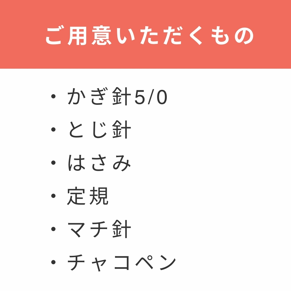 - 必要な毛糸や部材が入っているので道具があればすぐに作り始められます