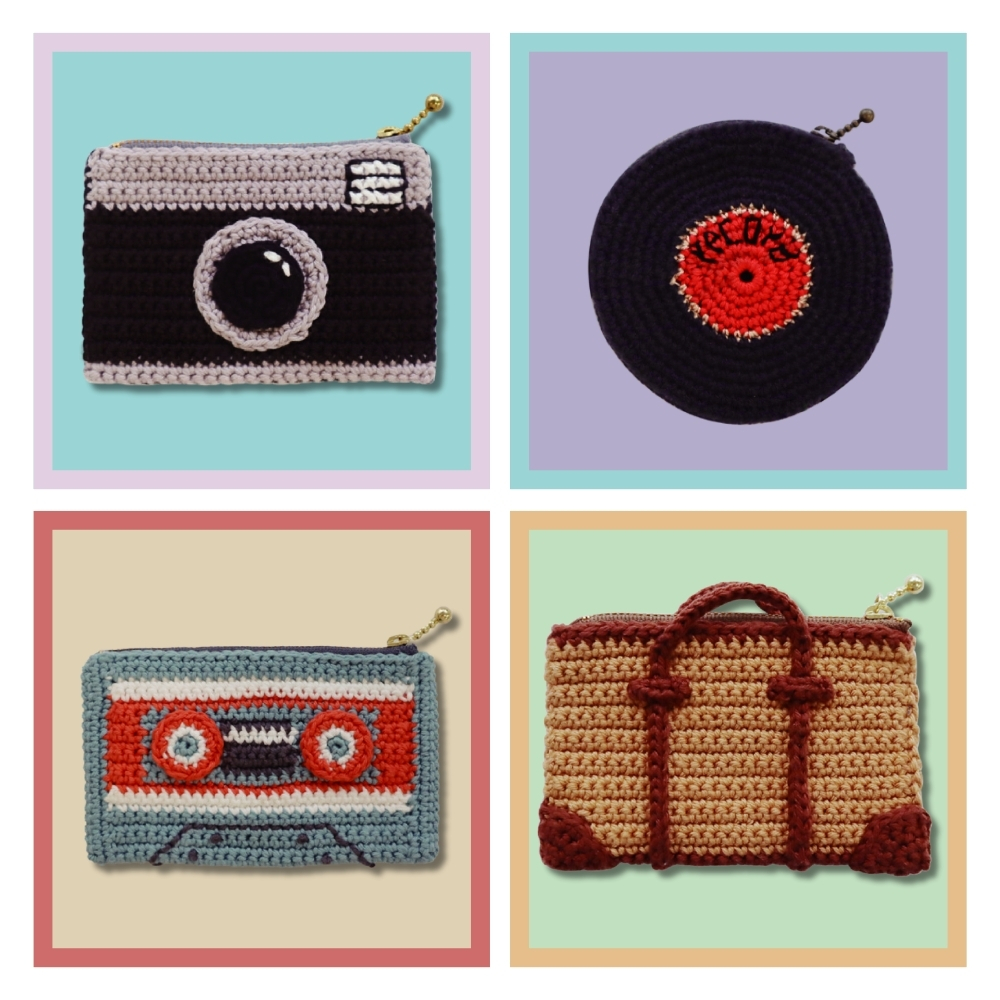 小物入れにぴったりなサイズのレトロでかわいいモチーフのポーチを制作することができます。編み糸ととじ針で、かんたんにファスナーを付けることができ、おうち時間に気軽にトライしていただけます。