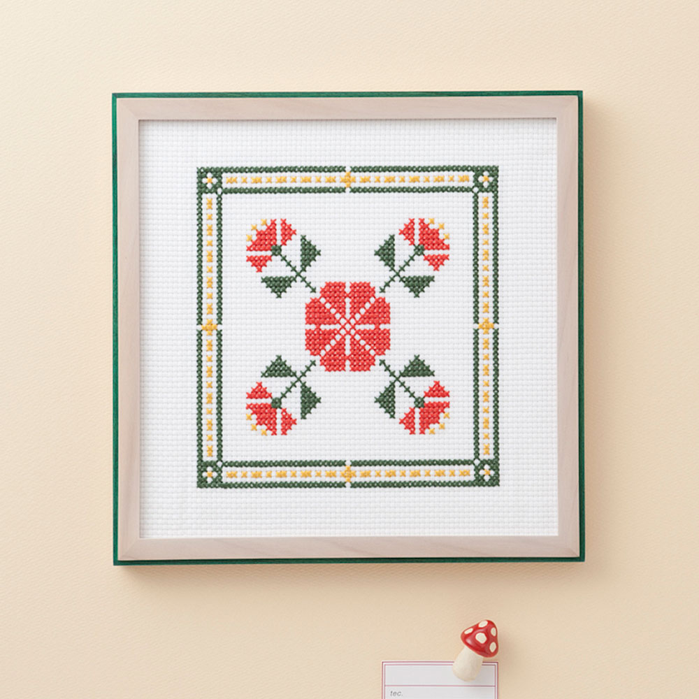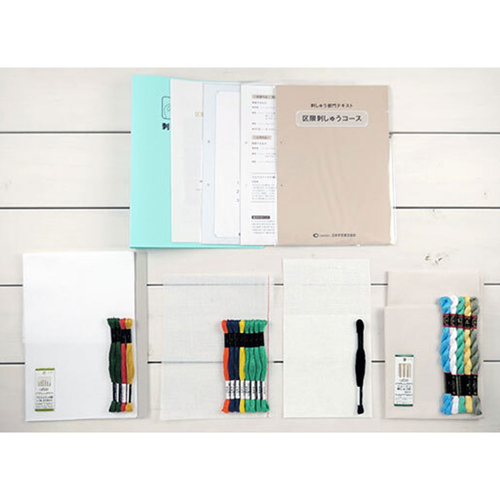 区限刺しゅうとは、織り糸の目数を拾いながら刺していく刺しゅうの総称です。クロスステッチのように多くの国でみられる刺しゅうもあれば、ハーダンガーワークやこぎん刺しゅうのように一地方でうまれ、育まれてきたものもあります。先の丸い針を使い、針を出し入れする位置が決まっていますので小さいお子さんから年配の方まで比較的誰にでも取り掛かりやすい技法です。だからこそ、きちんと学習した人の作品は一味違います。どこから始めるか、どのように進めるか、きれいに仕上げるための糸始末などの基本を学ぶだけで作品の完成度がぐっと上がります。ほんとにこのやり方でいいのかしらと思っている方、もっと他の技法もやってみたいという方にお勧めの講座です。