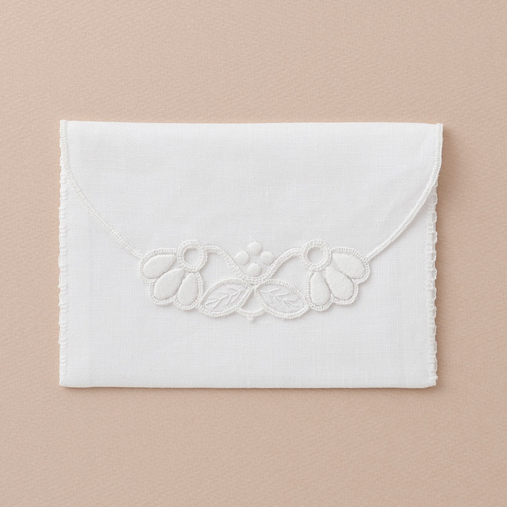 白糸刺しゅうは、白布に白糸で刺す刺しゅうの総称で歴史も古く、生活雑貨に最も多く使われている刺しゅうです。