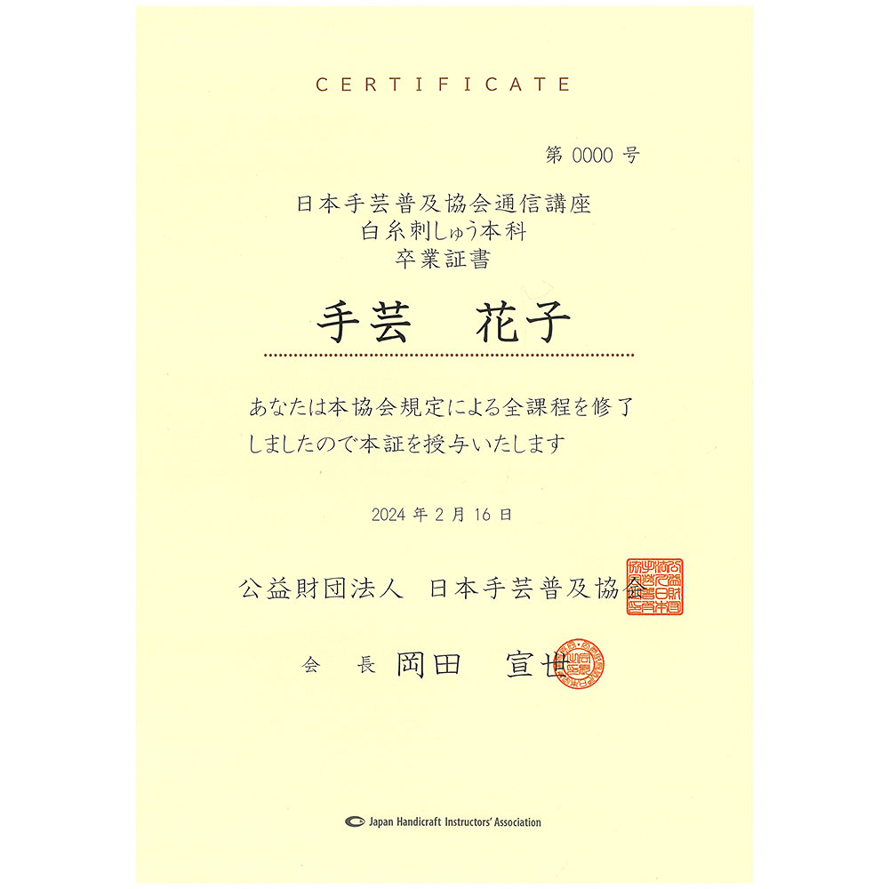 - 〈日本手芸普及協会通信講座〉白糸刺しゅう本科