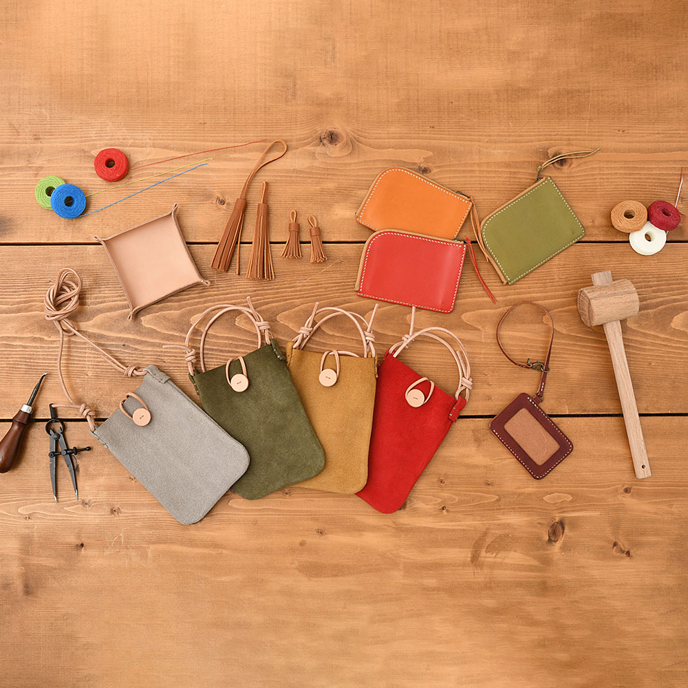 カリキュラム自体が、作品を順を追って作っていくと少しずつ技術や知識が身に付いていくように開発されているので、楽しく作っているだけでレザークラフトが上達します。しかもどれも使いたくなる作品ばかり。一部の作品の革の色や、糸色も16色から選んでお好みで仕立てられるので、作った後も一層愛着が沸きます。