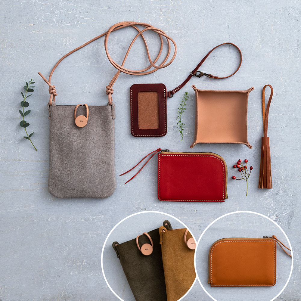 カリキュラム自体が、作品を順を追って作っていくと少しずつ技術や知識が身に付いていくように開発されているので、楽しく作っているだけでレザークラフトが上達します。しかもどれも使いたくなる作品ばかり。一部の作品の革の色や、糸色も16色から選んでお好みで仕立てられるので、作った後も一層愛着が沸きます。
