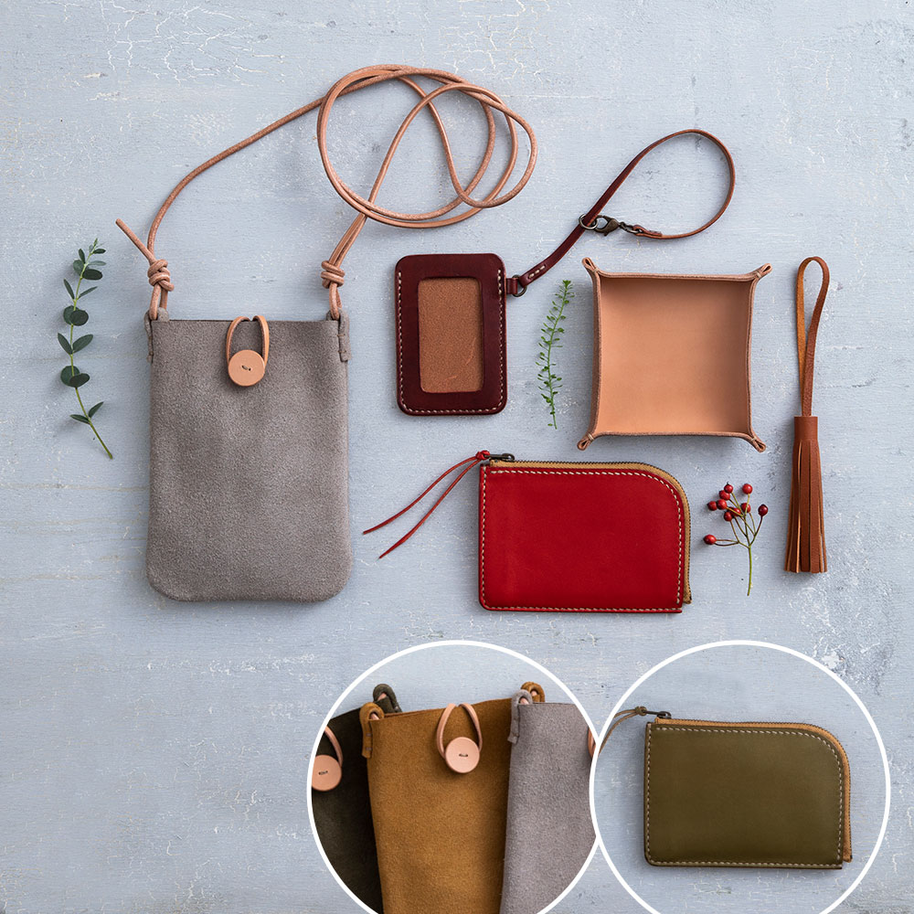 カリキュラム自体が、作品を順を追って作っていくと少しずつ技術や知識が身に付いていくように開発されているので、楽しく作っているだけでレザークラフトが上達します。しかもどれも使いたくなる作品ばかり。一部の作品の革の色や、糸色も16色から選んでお好みで仕立てられるので、作った後も一層愛着が沸きます。