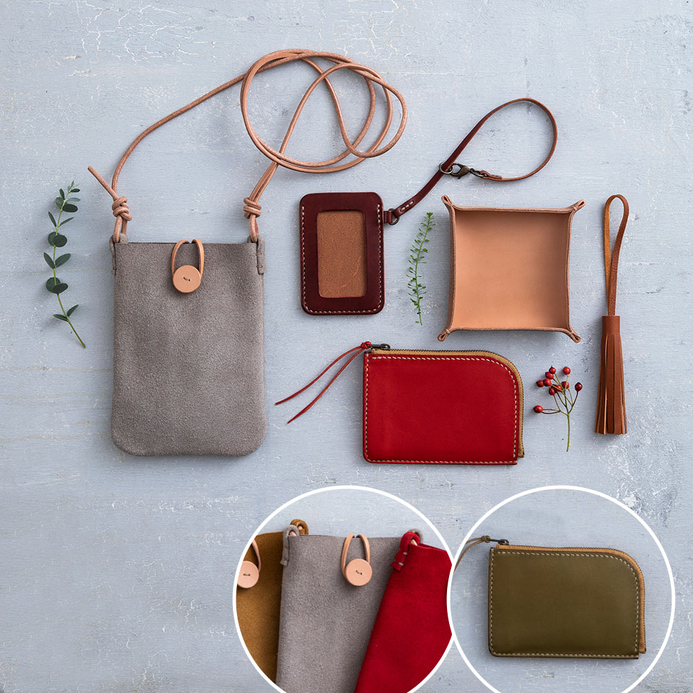 カリキュラム自体が、作品を順を追って作っていくと少しずつ技術や知識が身に付いていくように開発されているので、楽しく作っているだけでレザークラフトが上達します。しかもどれも使いたくなる作品ばかり。一部の作品の革の色や、糸色も16色から選んでお好みで仕立てられるので、作った後も一層愛着が沸きます。