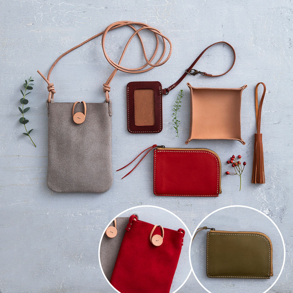 カリキュラム自体が、作品を順を追って作っていくと少しずつ技術や知識が身に付いていくように開発されているので、楽しく作っているだけでレザークラフトが上達します。しかもどれも使いたくなる作品ばかり。一部の作品の革の色や、糸色も16色から選んでお好みで仕立てられるので、作った後も一層愛着が沸きます。