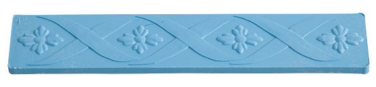 文様が彫られたプラスチックの板で、エンボス加工(型押し)をする時に使います。