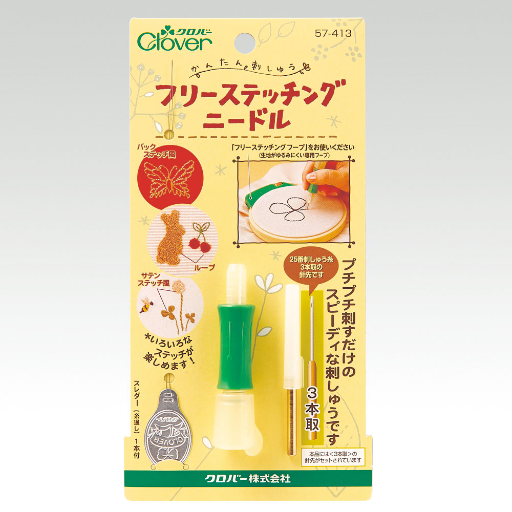 プチプチ刺すだけの簡単刺しゅう技法で、イラストを描くように刺すだけで、目のそろったきれいなステッチが楽しめるツールです。バックステッチ風、サテンステッチ風、ループステッチ、ベルベット調など色々なステッチをさすことができます。25番刺しゅう糸3本取り用針です。