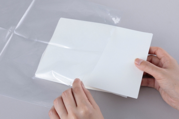 4 ビニール袋に入れ、袋の中の空気を出しながら袋を折ります。
