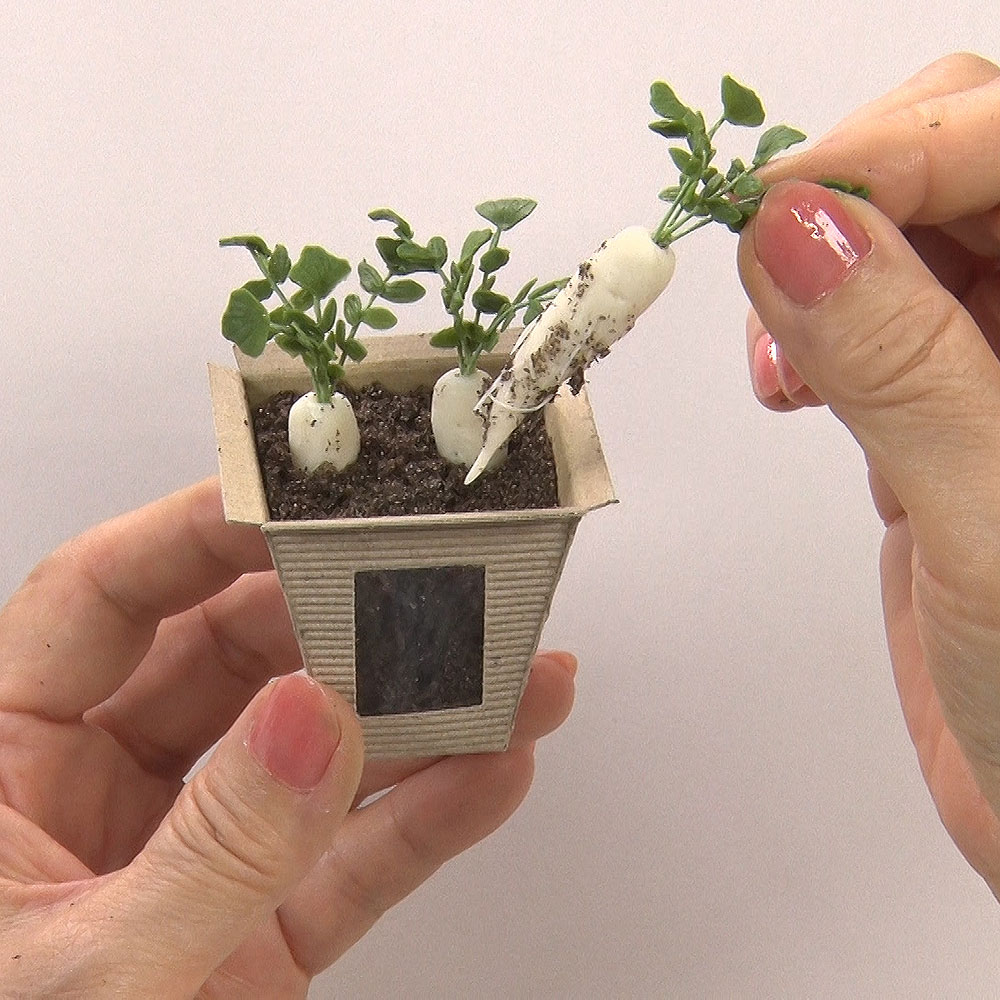 オーブン粘土キット「収穫できるミニチュア野菜畑」シリーズのダイコンです。