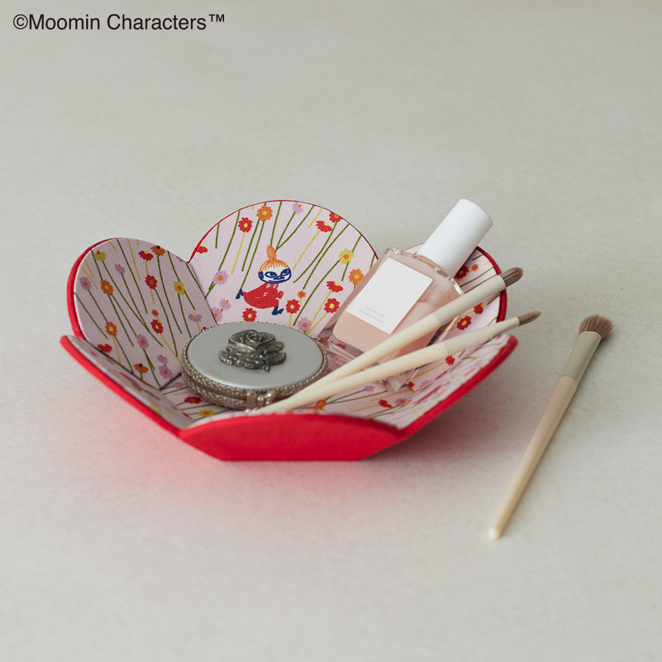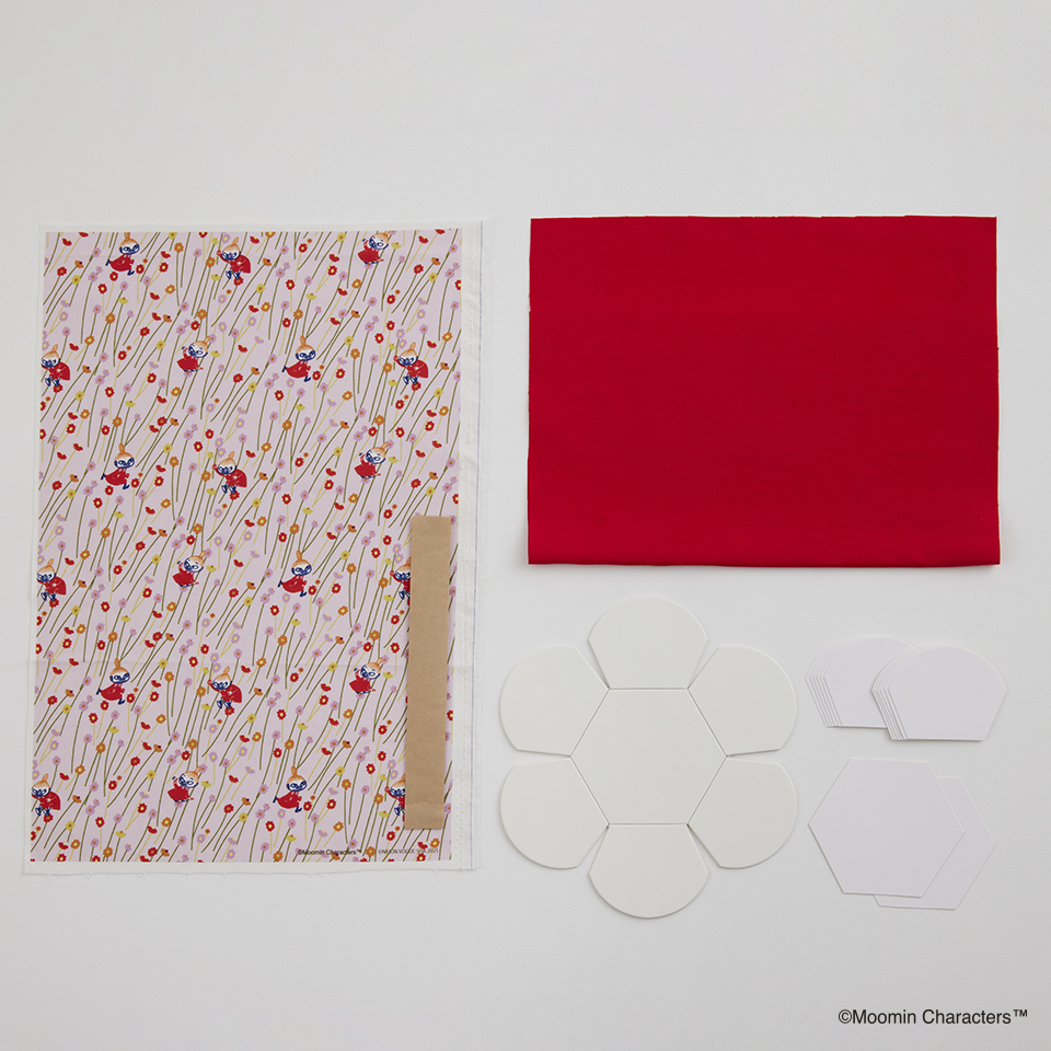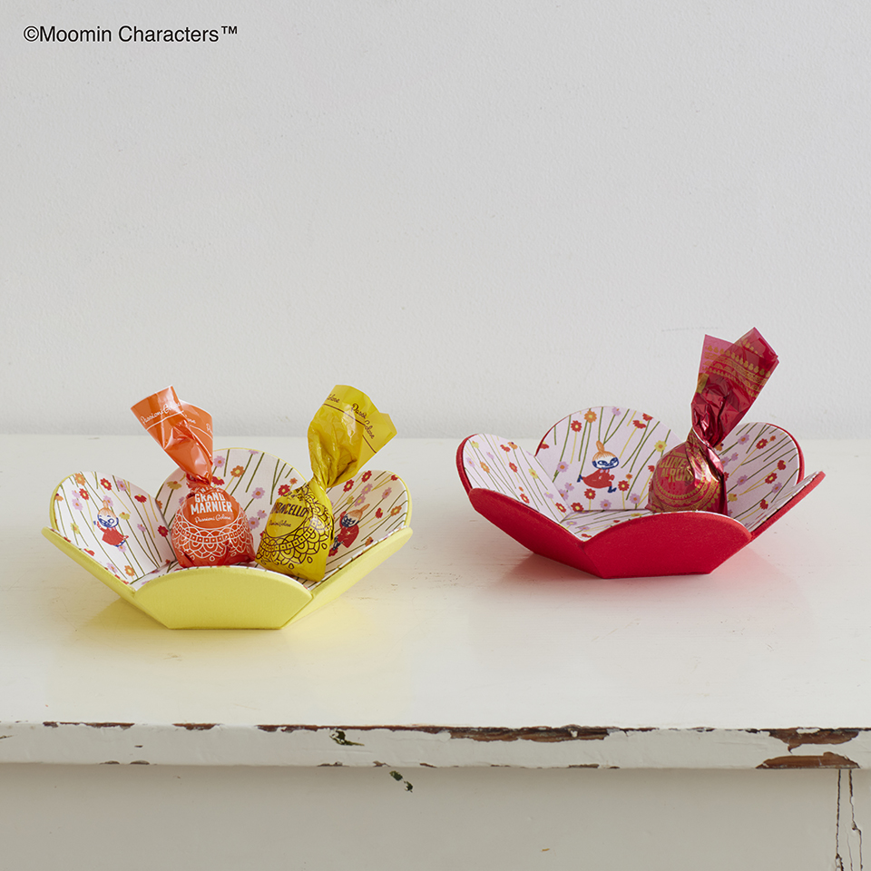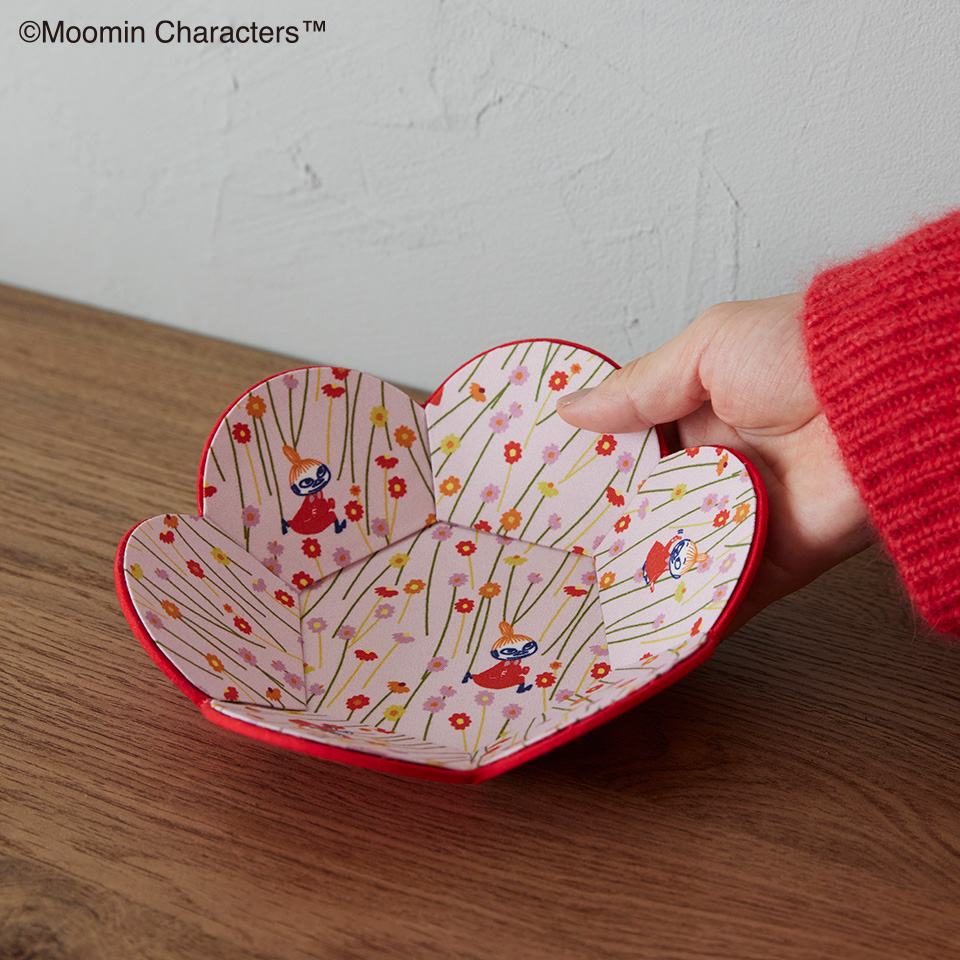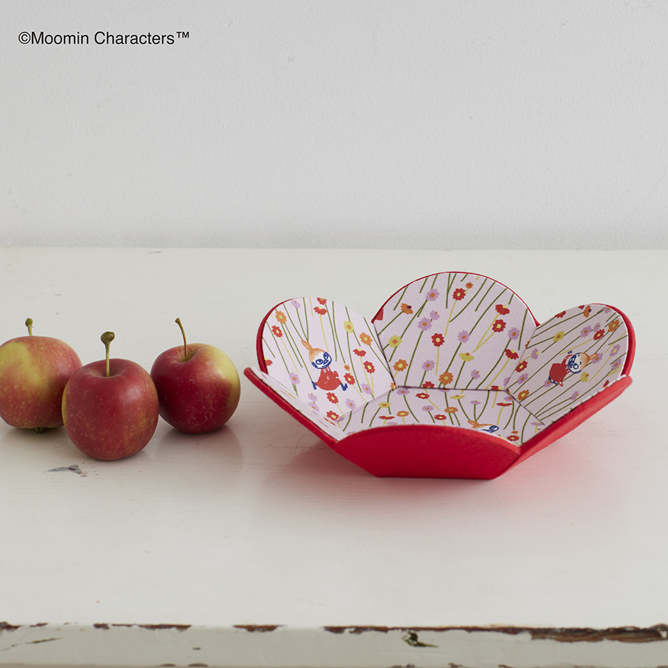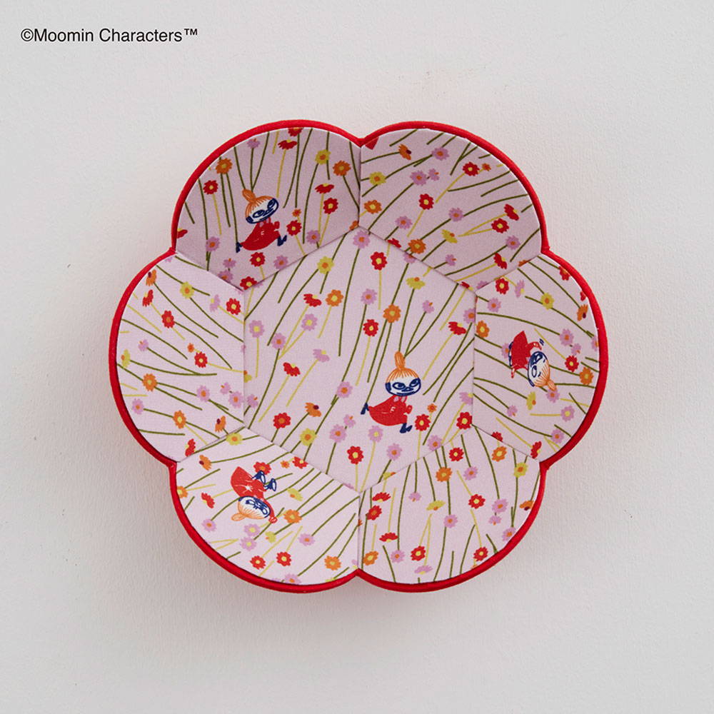 お花畑の中を駆け回るような、2025年リトルミイフェア限定アートの布でつくる、お花の形のトレイが作れるカルトナージュの手づくりキットです。針や糸を使用せずにグルーで貼っていくので普段手芸をしない方もクラフト感覚でお楽しみいただけます。