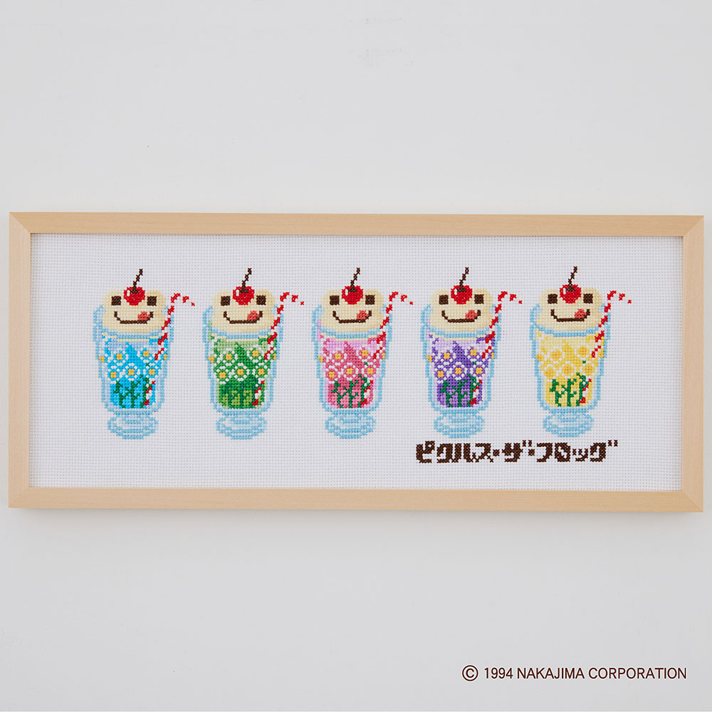 大きな愛らしい瞳で大人気「かえるのピクルス」の純喫茶シリーズより、色とりどりでかわいいクリームソーダがクロスステッチになりました!