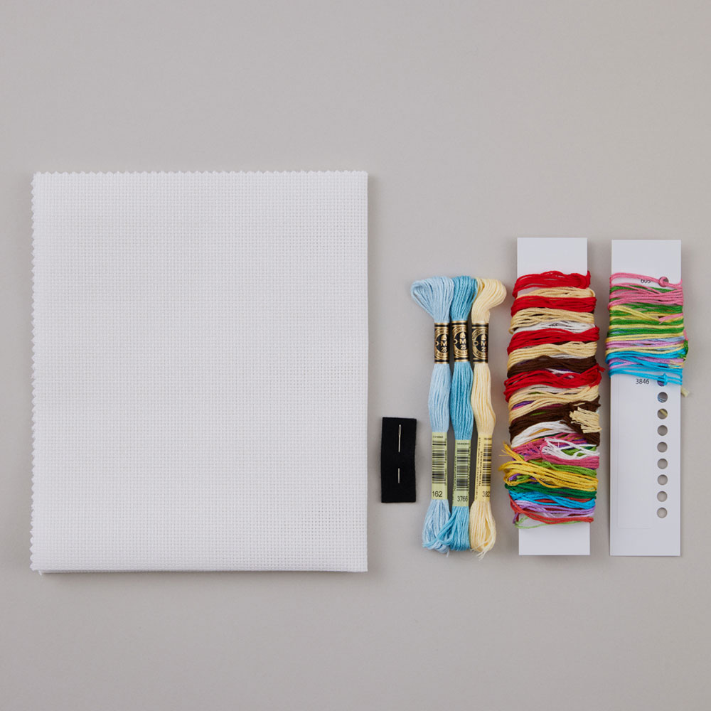 クロスステッチは、方眼の布目にクロス(×)に糸を通して絵を描く刺しゅうです。 クロスステッチ用の布を使用することで、初めての方でも簡単に作る事ができます。