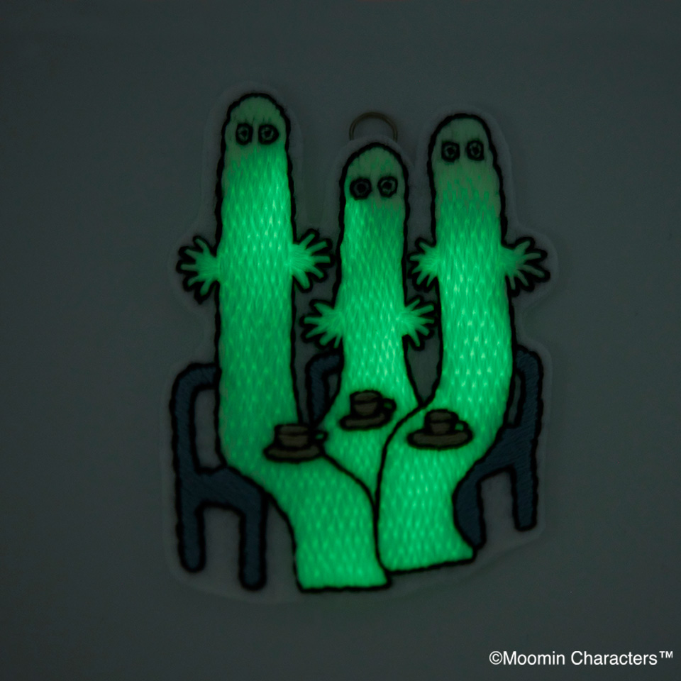ニョロニョロのボディには暗闇で光る蓄光タイプの糸を使用しており、夜間や暗い場所でほんのりとニョロニョロが光ります。