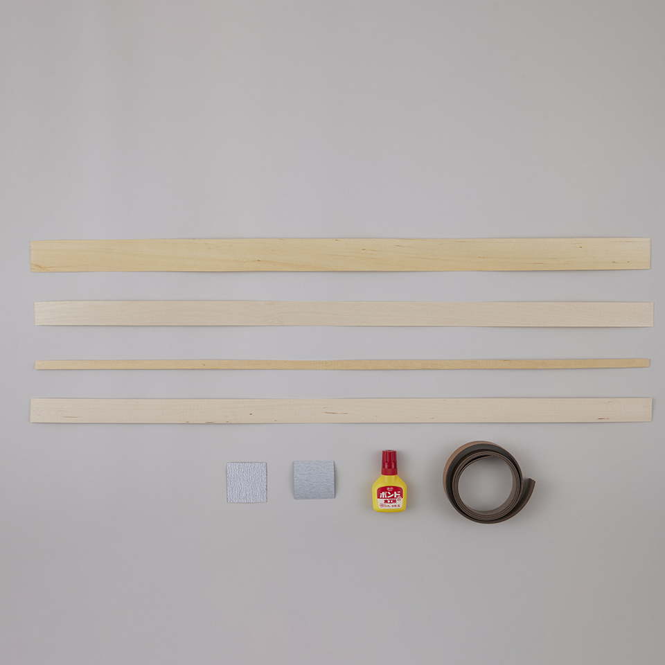 材料キットの白樺スポーンは北海道の白樺を、薄くそいで使用幅に加工したのものをセットしています。