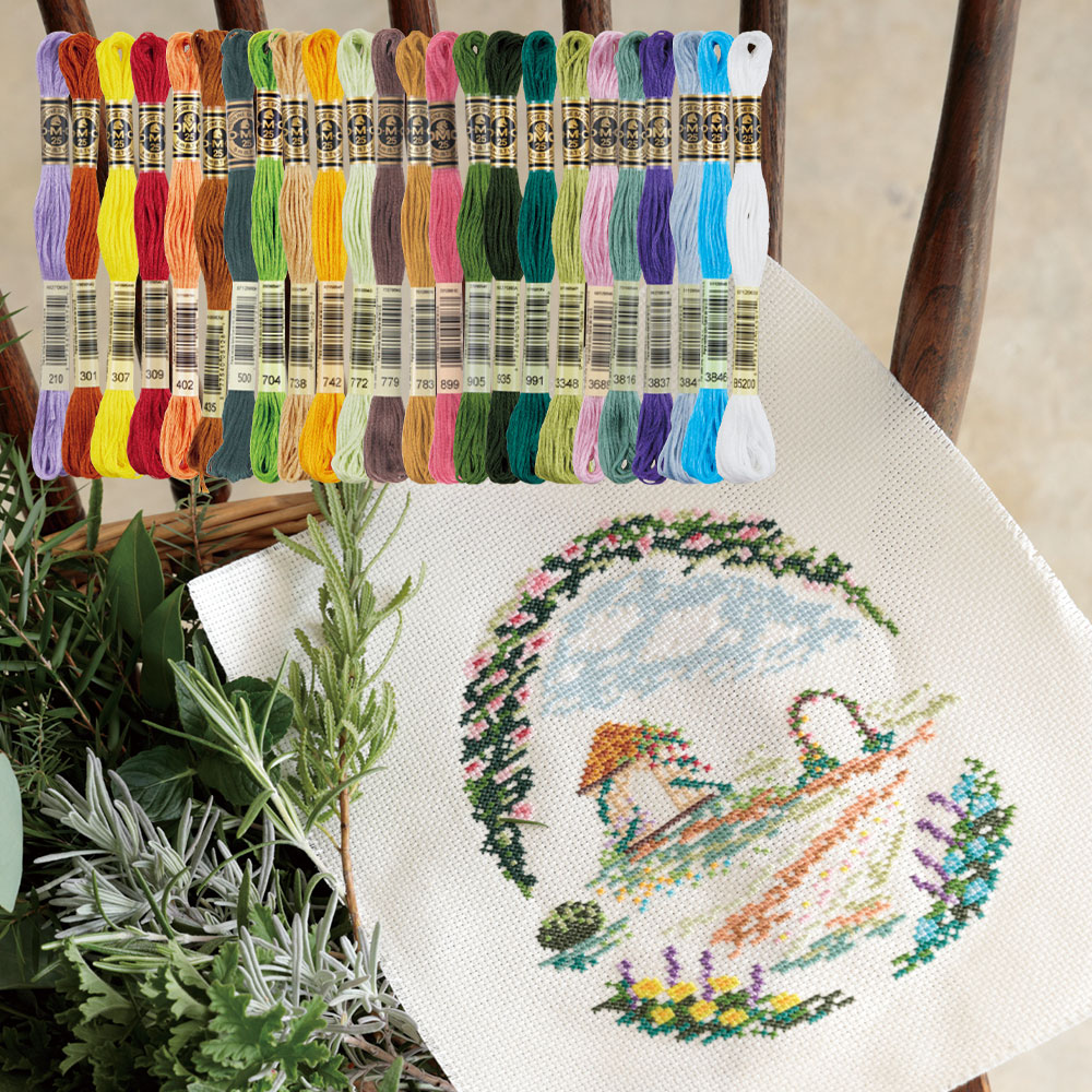 ステッチイデーvol.45 18ページ掲載の作品に使用しているDMC25番糸刺しゅう糸のセットです。