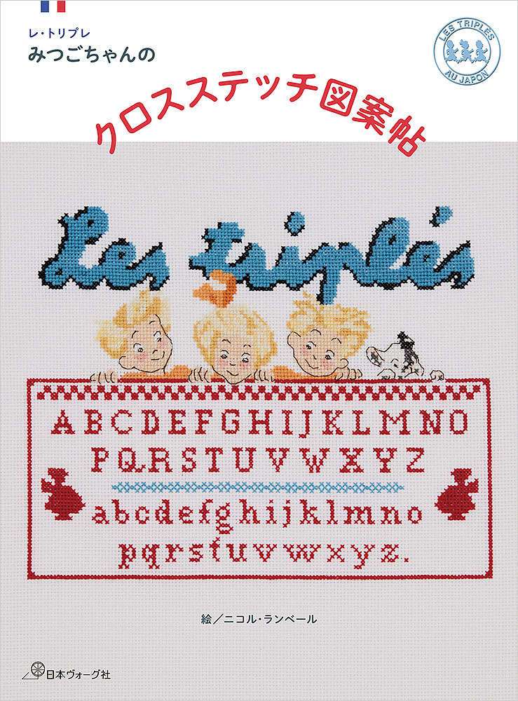 フランスの絵本「Les triple みつごちゃん」の絵柄をクロスステッチにして楽しむ作品集。フランスらしい柔らかな色合いとタッチが人気です。「パリのみつごちゃん」、「みつごちゃんのクリスマス」、「花とみつごちゃん」などテーマごとに大小さまざまな図案が登場します。
