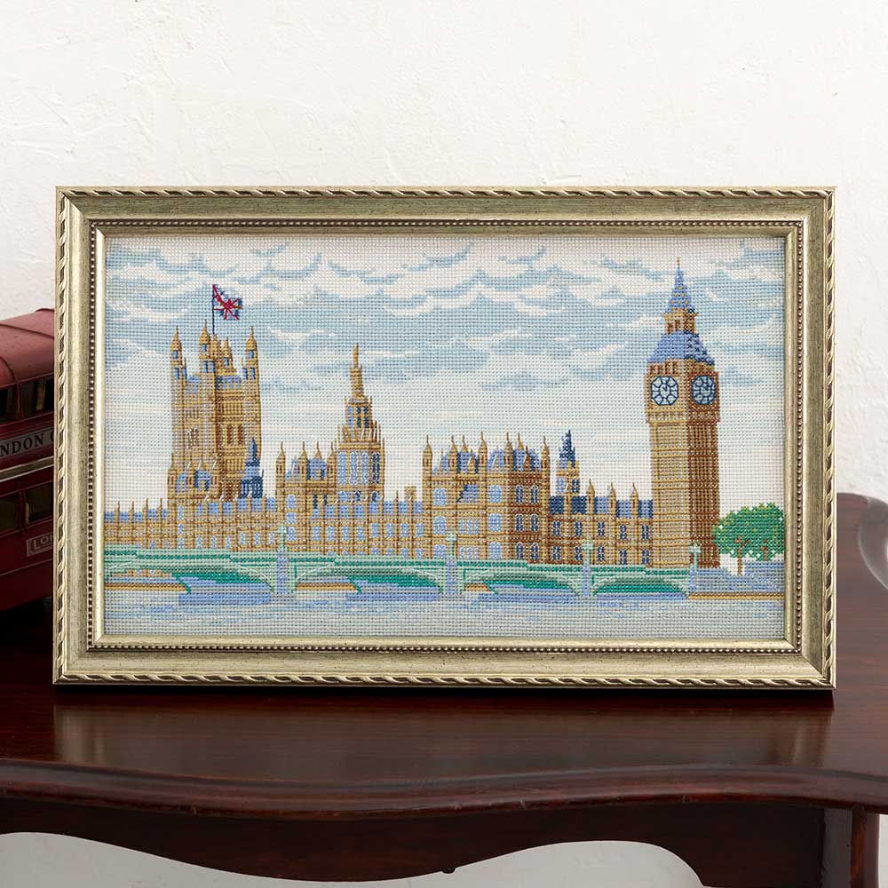 【キット作り方つき】【フレームつき】 観光地ウェストミンスター宮殿をクロスステッチで楽しみます。旅の思い出の時間をゆっくりと刺しゅうで楽しんで。上級の方向け。