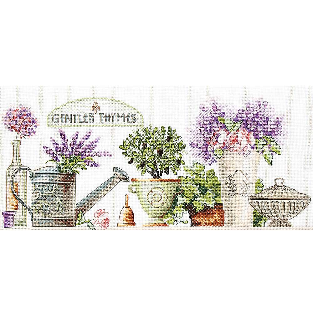 【キット作り方つき】おしゃれなフラワーポットと可憐な花などを描いた、さわやかなクロスステッチ作品です。 上級の方向き。ウクライナ・Charivna社製(チャリブナ)。
