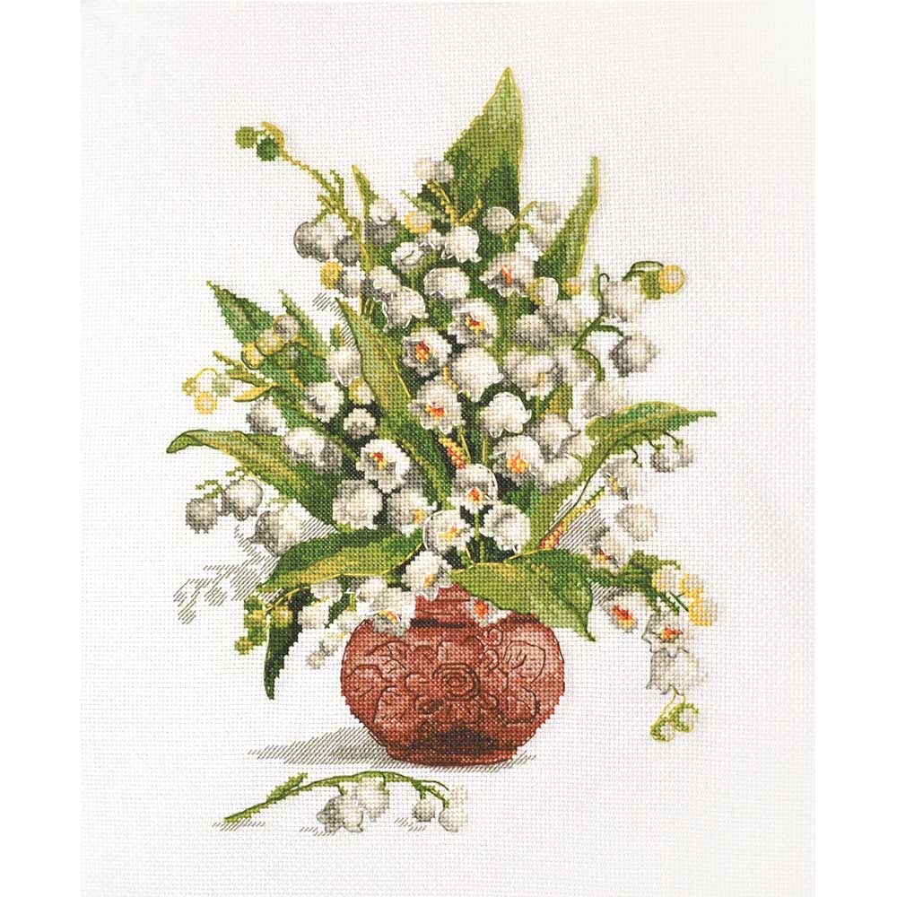 【キット作り方つき】真珠のように丸くぷっくりと咲いたスズランを描いたクロスステッチ作品です。上級の方向き。ロシア・OBEN社製。