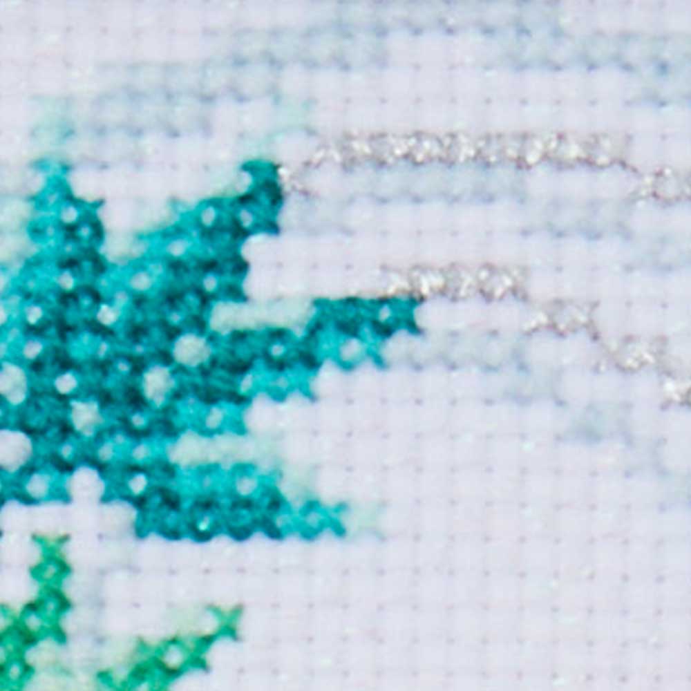 綿・ポリエステル・ナイロン混の刺しゅうクロス(14カウントラメジャバクロス/ホワイト・オーロラ)、コスモ刺しゅう糸、ラメ糸(にしきいと)、針、フレーム(樹脂)