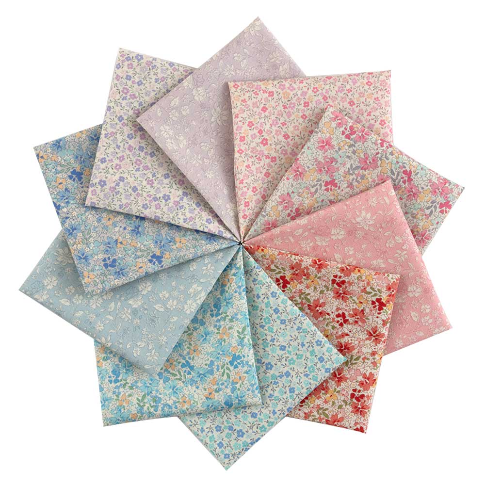 ベーシックな小花を優しい色合いで描いた可愛らしいコレクション。ピンクとブルーを中心に集めました。ピースワークや小物作りなどにも。