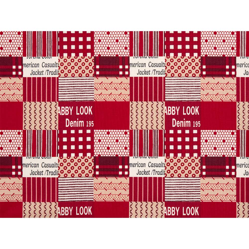 小関鈴子さんデザイン。英字やストライプ、格子柄などを描いた、約2.5~3.5×4cmの四角形をつないだパッチワーク柄です。そのままソーイング用や、部分を切り取っても。