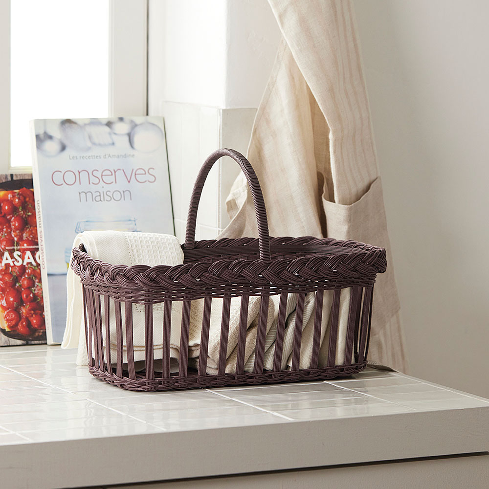 フランス中央部のロワール川の支流アンドレ川が流れる渓谷地帯で作られているかごをイメージして、紙バンドで作りました。 透かしのあるかごは、かご口で縦ひもを割いて、縁編みをした存在感のあるデザインです。 ハードタイプの紙バンドを使用しますので、ボンドをつけてしっかりと貼り合わせてください。