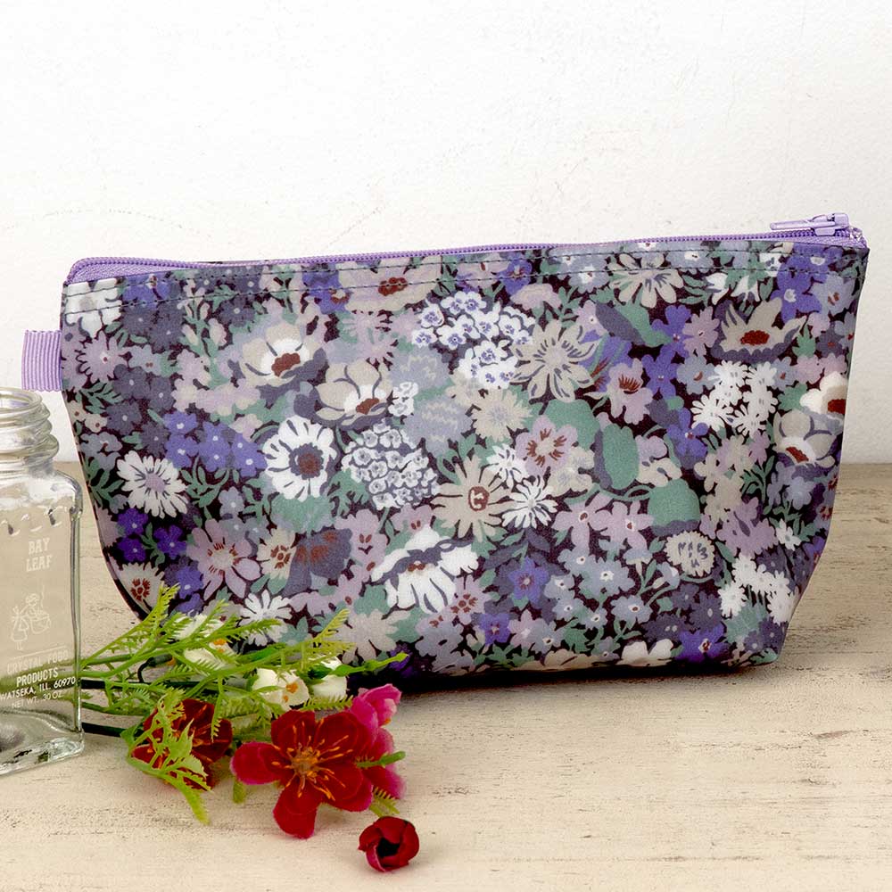 【限定60】【完成品】ファスナーとサイドループの色をアクセントにした、リバティ・ファブリックスのポーチです。[ソープ]はマチつきで使いやすいサイズ。フラットタイプのベッツィ・ベリーは、実部分が蛍光ピンクです。