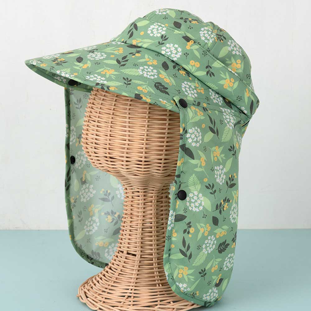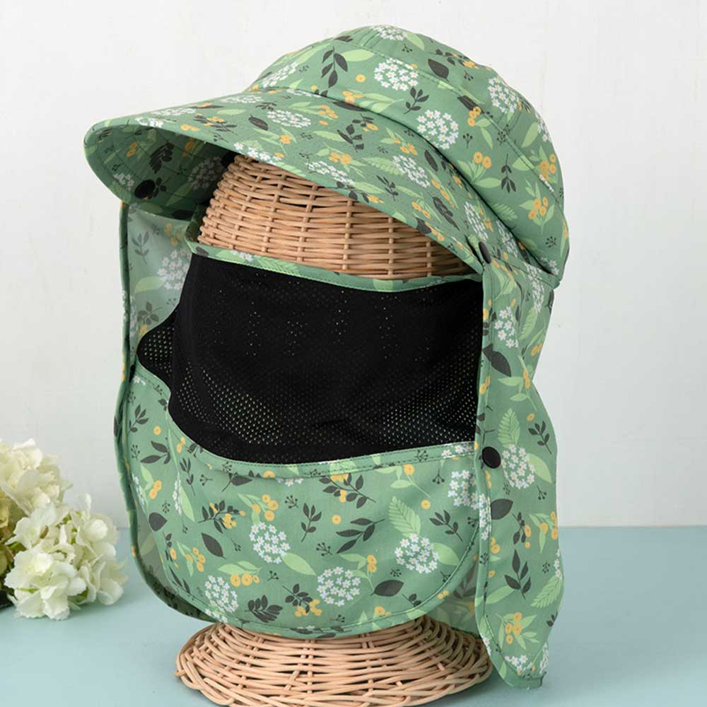 【限定50】【完成品】口元しっかりマスク、ハット&うなじガード、ハット、サンバイザーなどを組み合わせて4WAYで便利に使える帽子です。頭囲サイズはマジックテープで調整可能、大きめのつばで日差しをカット。口元は息がしやすいメッシュ加工でデコルテまでしっかりカバー。通気口があるので水分補給も可能、うなじの日焼けもカバーします。