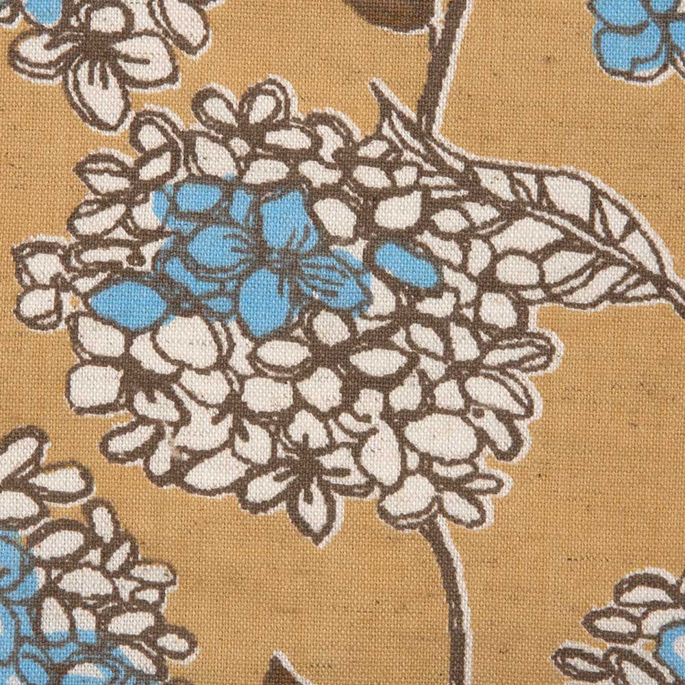 【完成品】麻混生地で使いやすいと人気のシリーズより、春夏にぴったりの爽やかなあじさい柄のエプロンです。ナチュラルなベースカラーに少し大きめの紫陽花が描かれた大人っぽい柄。ひもは後ろでゆったりと結んでも、前に回してもOK。オーソドックスな使いやすい人気の形です。足さばきの良い短めの丈です。