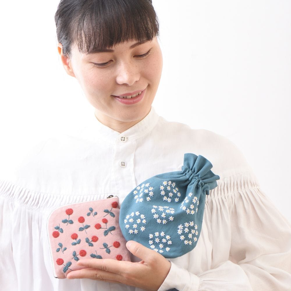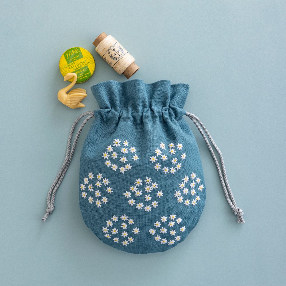 星あかりの刺繍手帖丸巾着袋「花飾り」