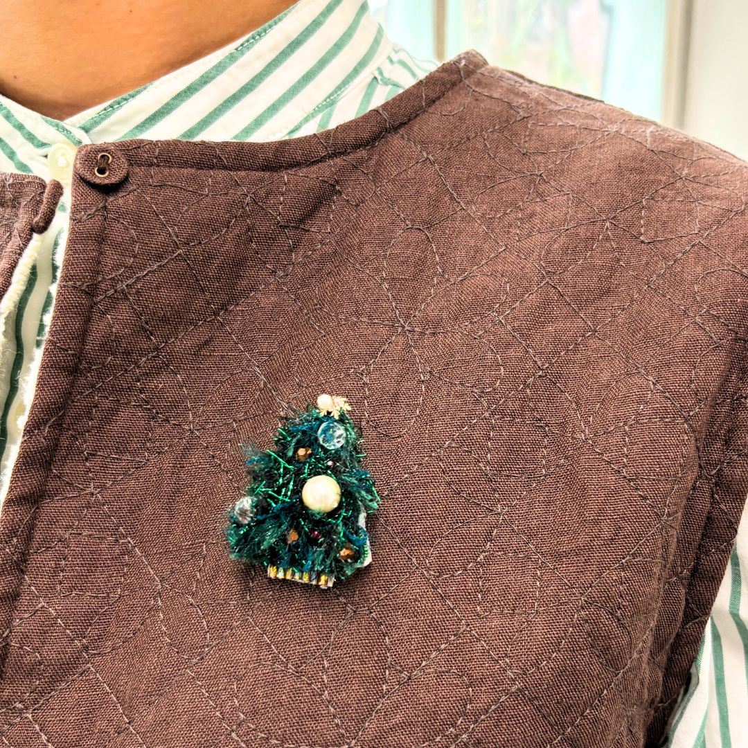 ふわふわと踊るような糸の質感が可愛らしい、クリスマスツリーのブローチが作れます。