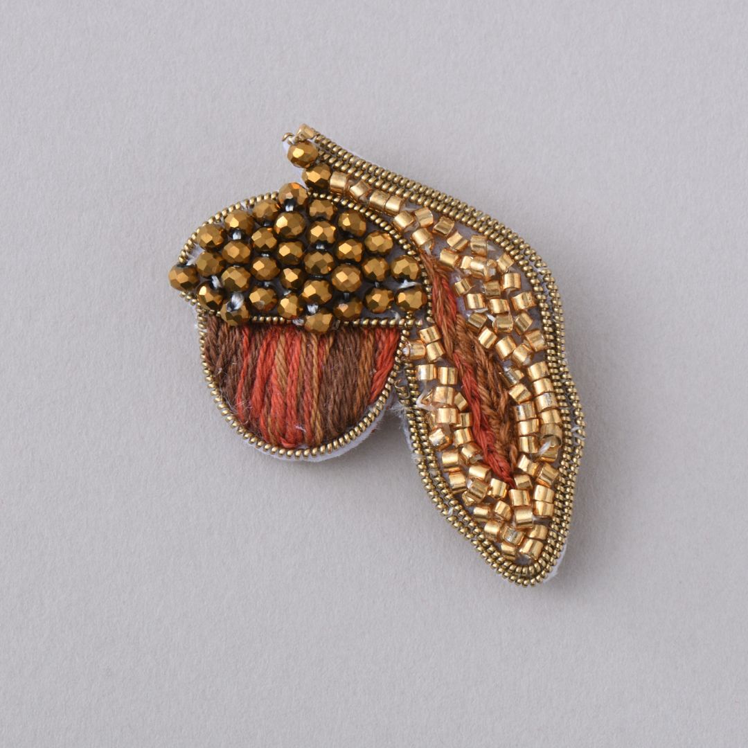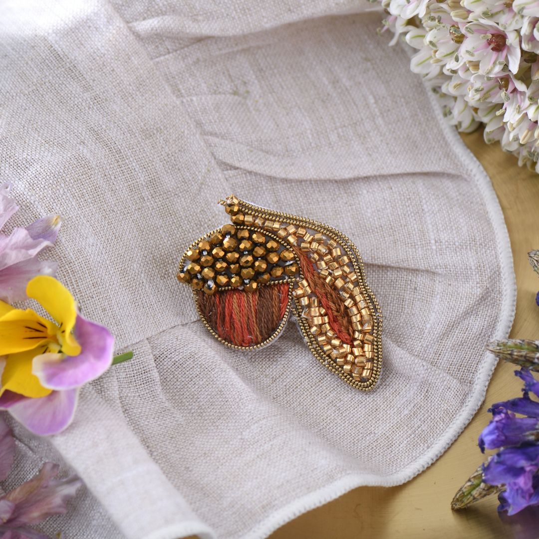 秋の実りをモチーフにした、どんぐりのブローチが作れます。