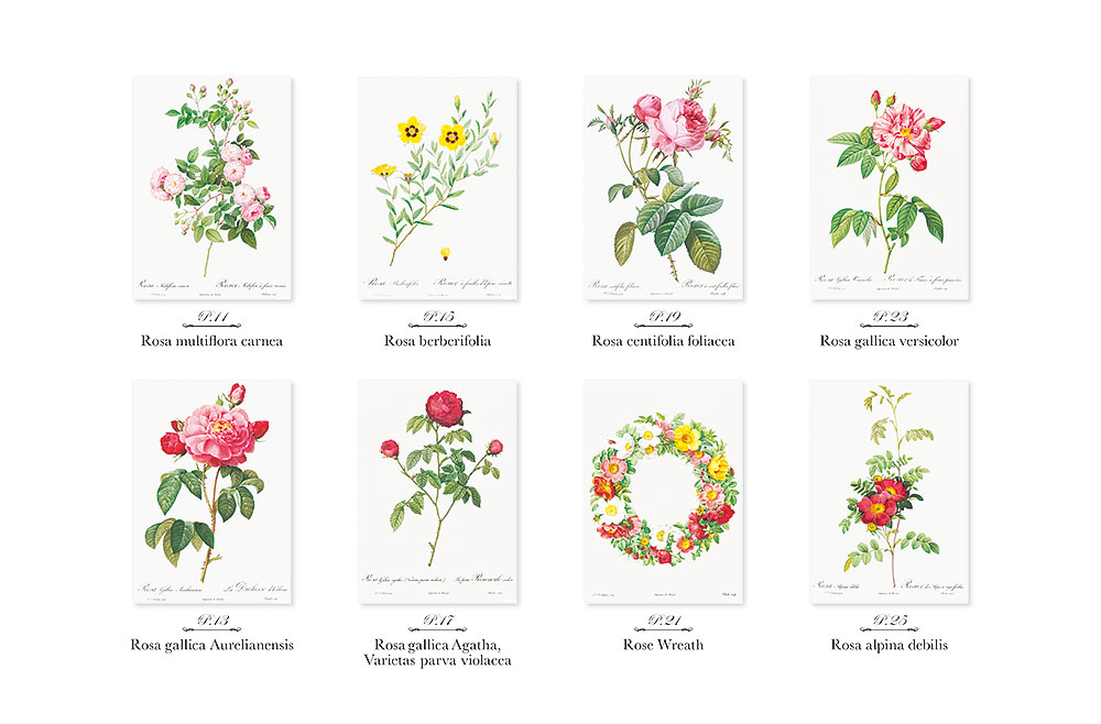 ポストカード塗り絵 ルドゥーテの美しいバラ ~ボタニカルアートの金字塔 『バラ図譜』より~