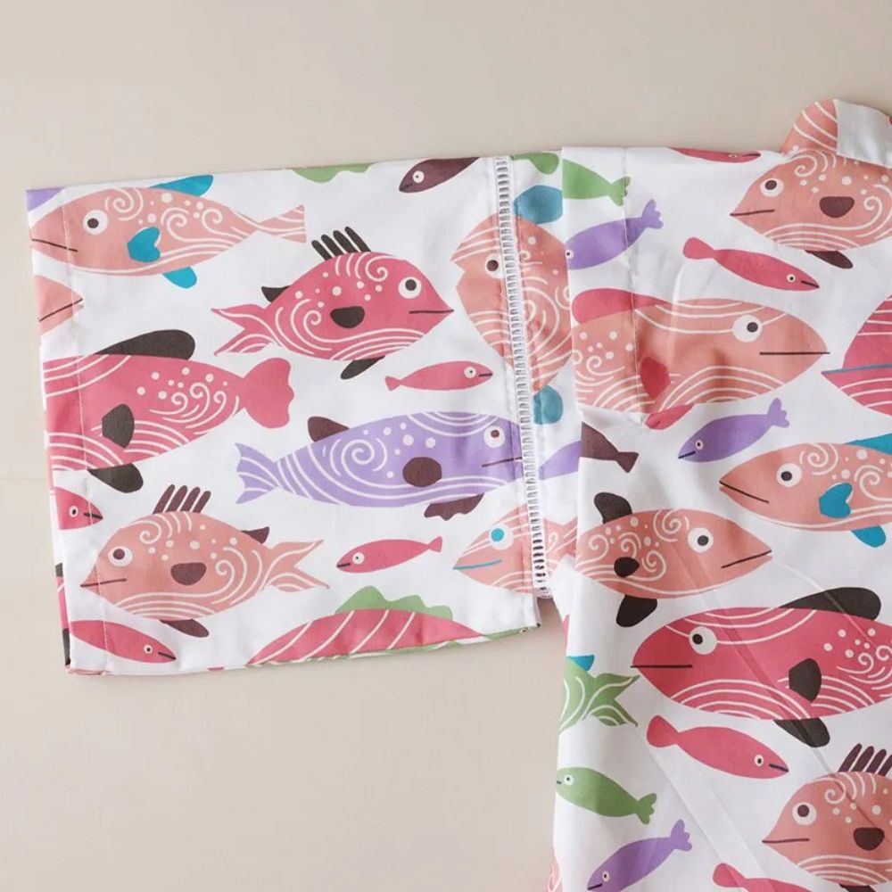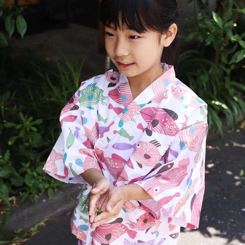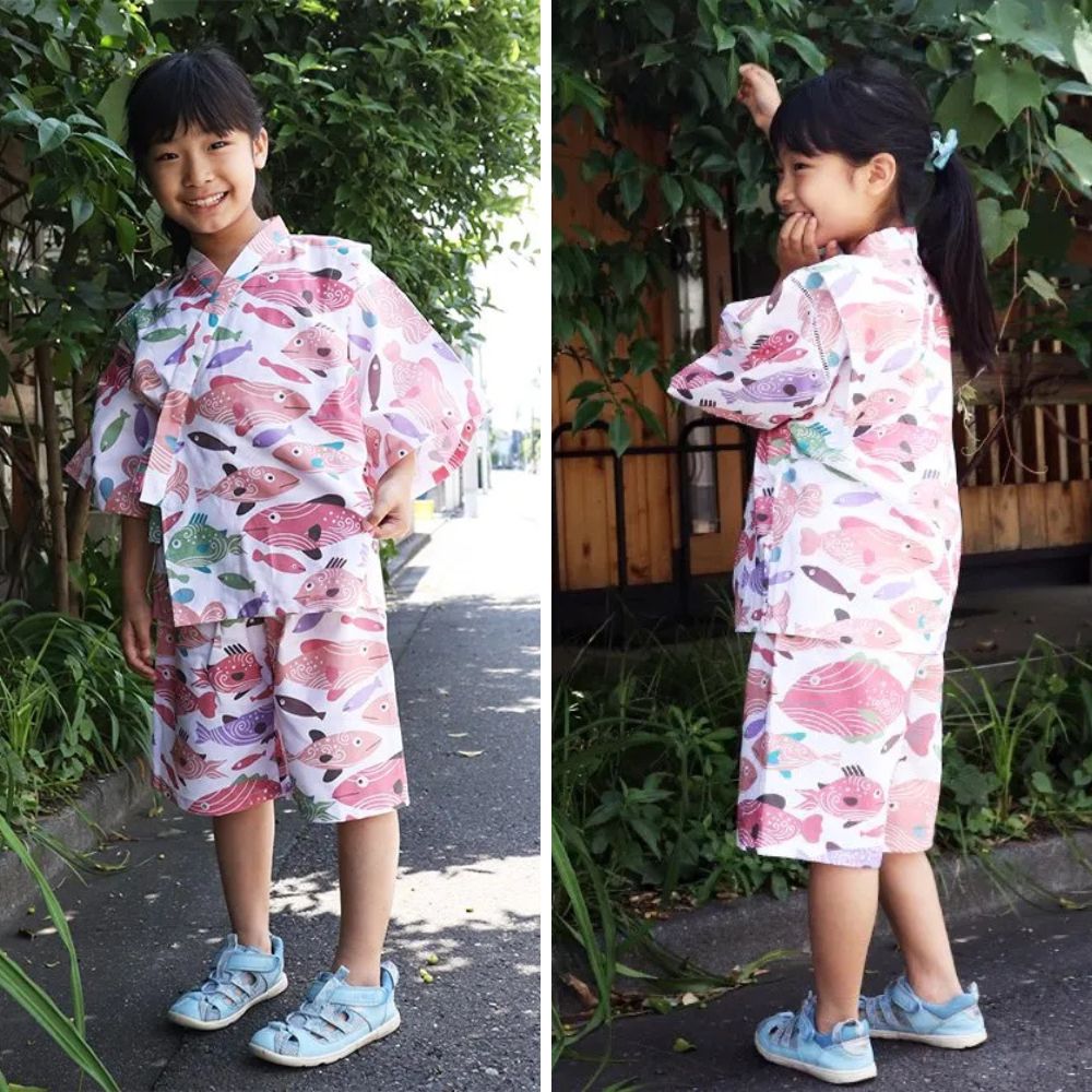 テキスタイル(布)の魅力がいっぱいの可愛いこども甚平は、夏祭りや花火大会に活躍してくれそう!暑い日のパジャマにも便利な甚平。