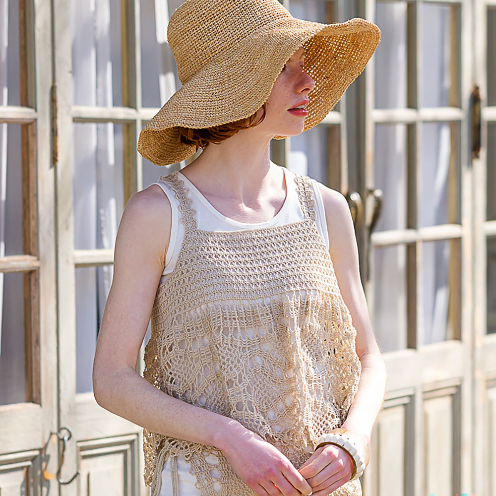 クロップド丈のキャミソールの肩ひもはボタンの位置で調節できます。ワイドパンツやデニムと合わせて、ナチュラルな大人のサマースタイルに。水着と合わせるのも素敵です。