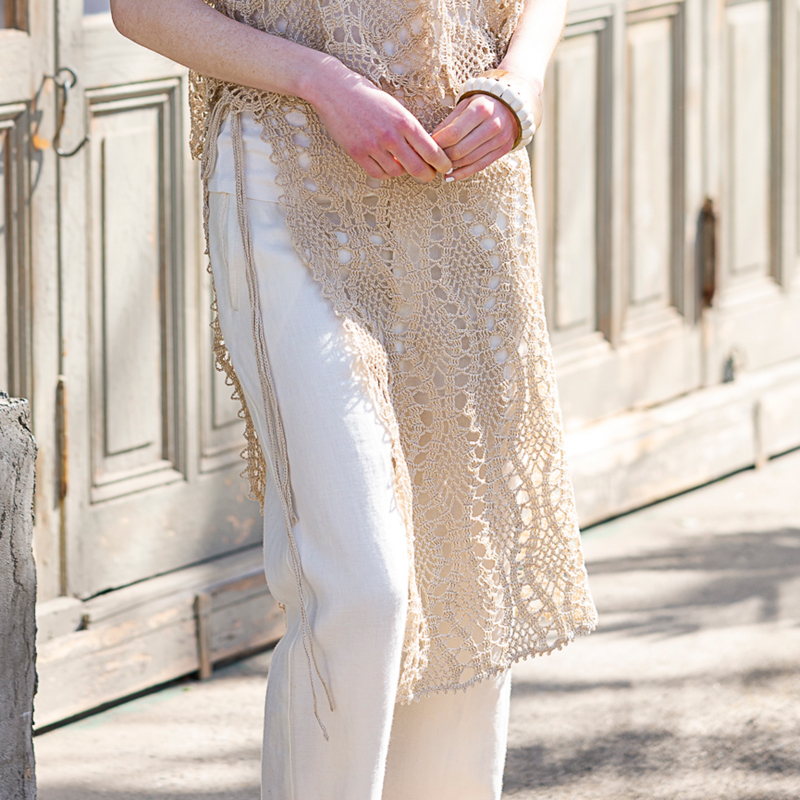 ワイドパンツやデニムと合わせて、ナチュラルな大人のサマースタイルに。水着と合わせるのも素敵です。