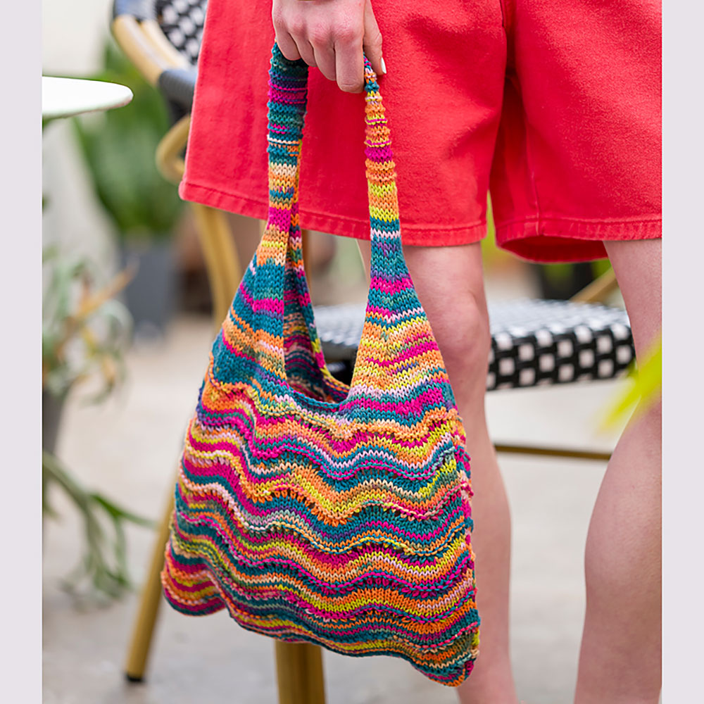 波のような透かし柄が夏らしい、カラフルなマルチカラーのバッグ。キャミソールのようで楽しいデザインです。
